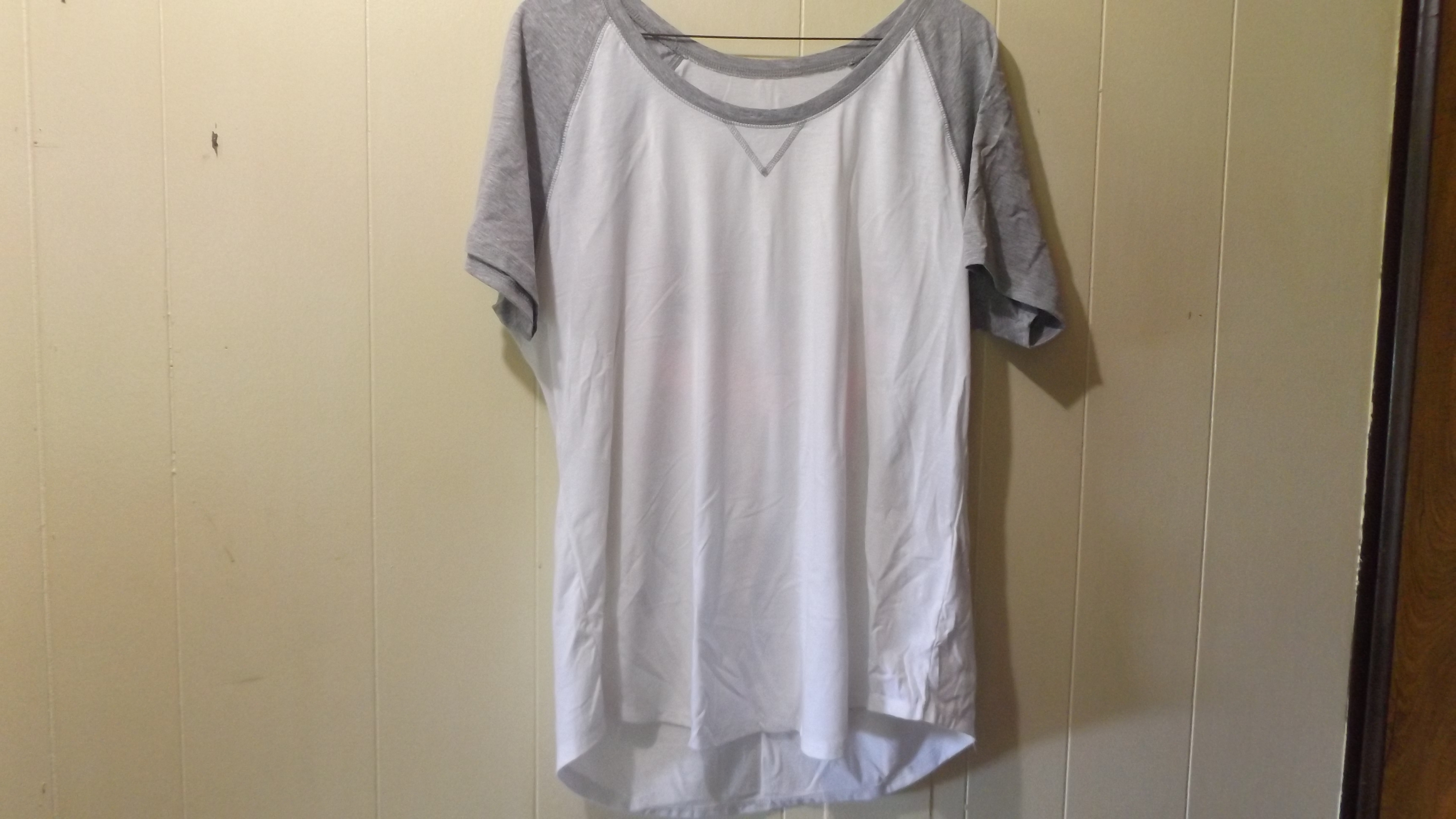 Two tone blue and grey size small preshrunk women's t-shirt. Graphics on the front. Hanes her way brand new custom made. No bleed in the wash. Loose fitting... White and grey is XL in size.