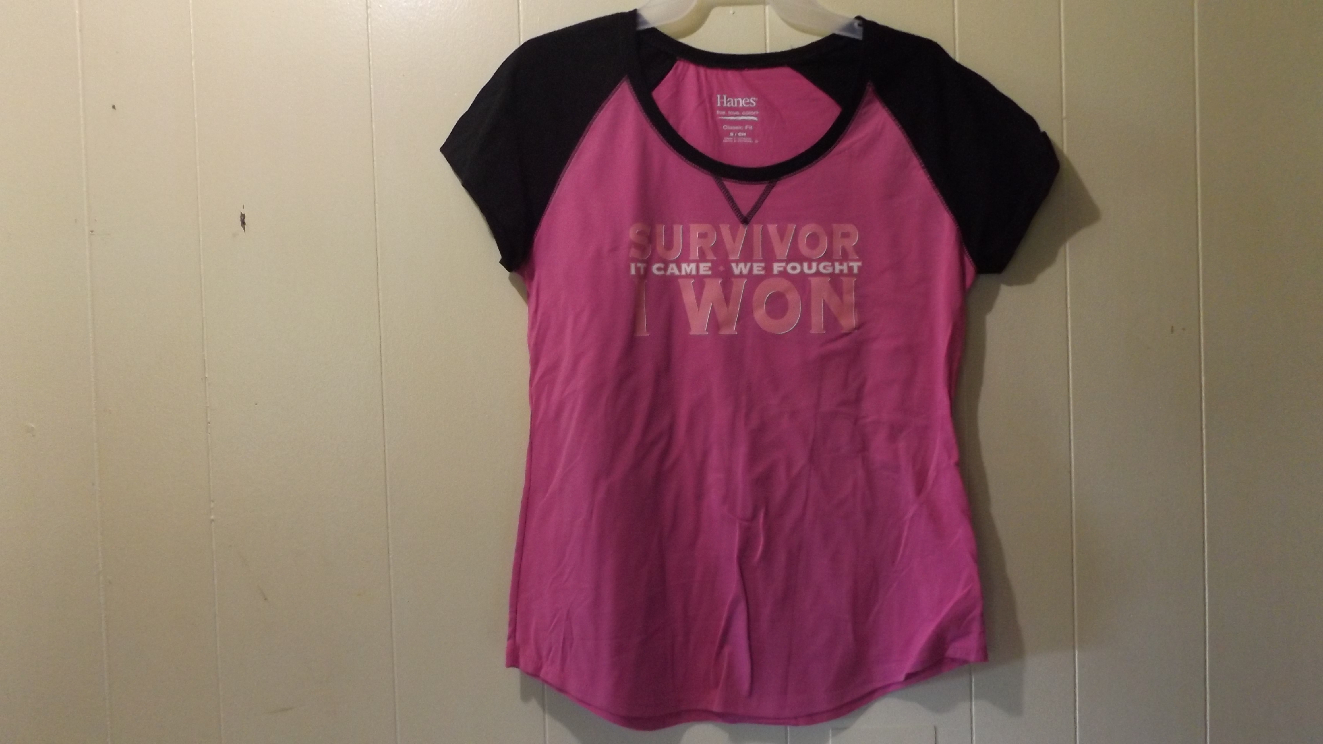 Custom made cancer survivor I won cotton small pink and black t-shirt. Preshrunk, will not bleed when washed. Two tone loose fitting true to size.