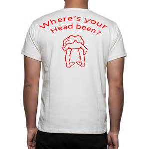 Where's your head been? Up a butt handmade vinyl t-shirt lettering custom made adult tees