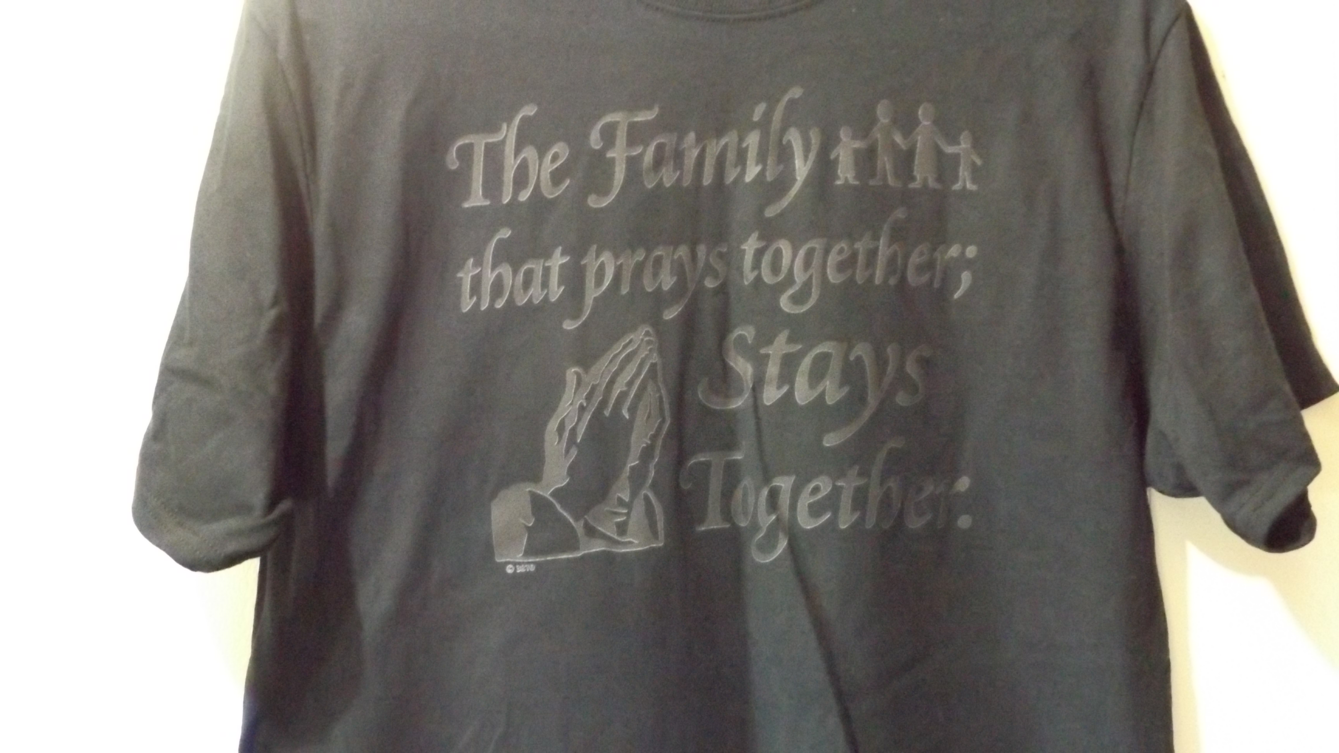 A family that prays together stays together, prayer's t-shirt. Black Medium tee.