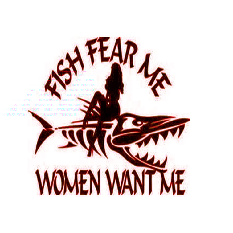 Fish fear me, sexy women want me fishing decal. Outdoor vinyl, UV and weather resistant vinyl.