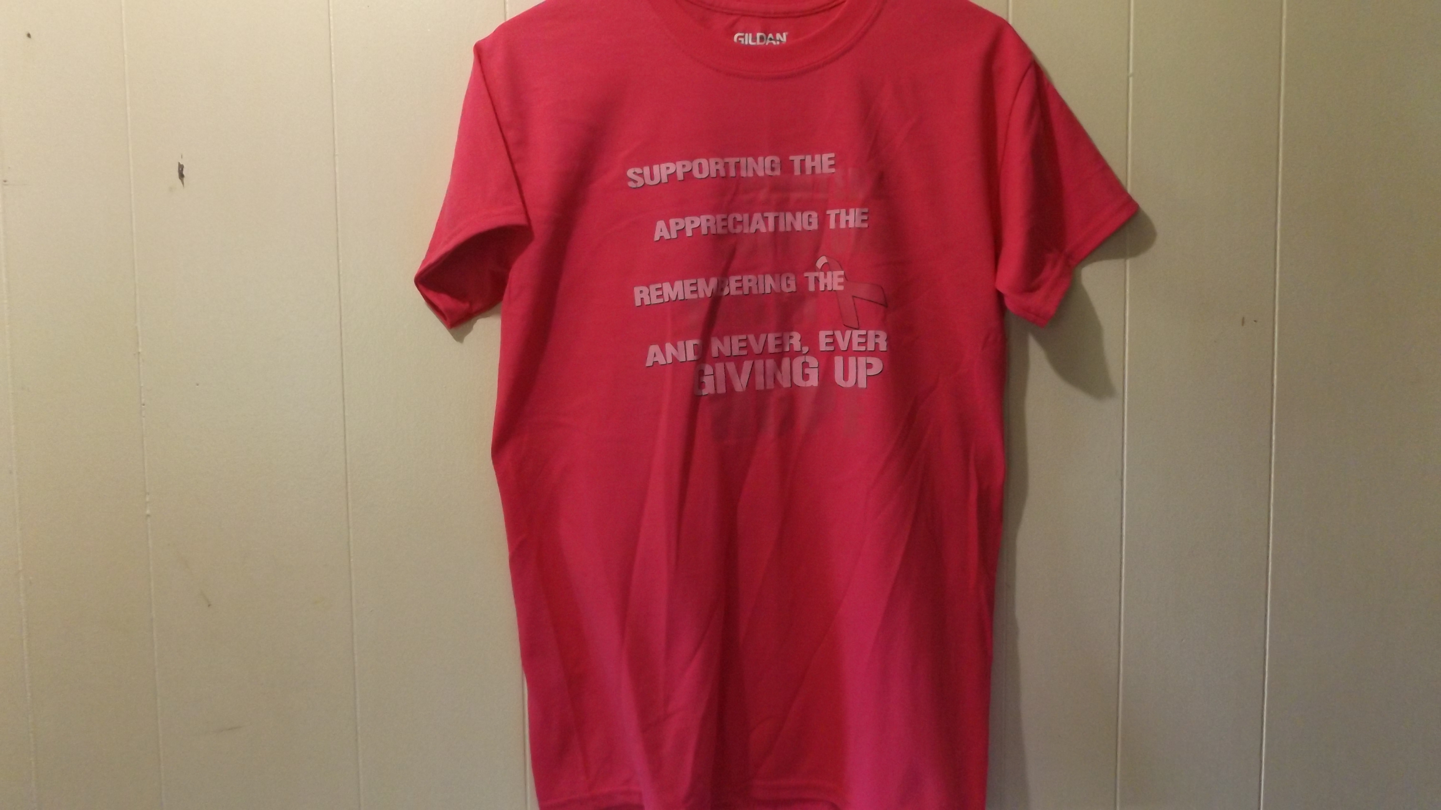 Preshrunk, no bleed cotton and cotton blend t-shirt. Lettering is vinyl material.