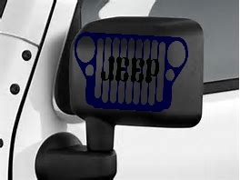 Custom Jeep side mirror decal sticker. Grill with Jeep lettering. For left and right. Choose from a variety of colors below. Leave side in message for seller during checkout. Otherwise these will be sent in 5" across by 4" height. (5x4) You will receive for left and right. (2)