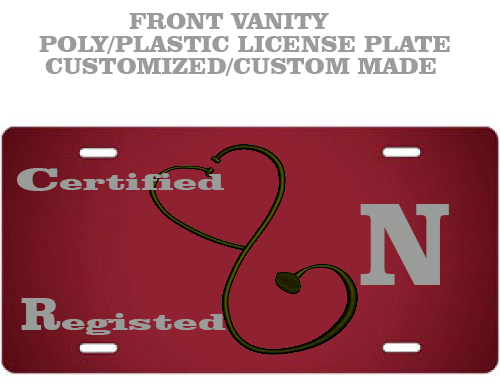Burgandy Nurse custom made front license plate poly made to order certified registered nurses vinyl letter 6 by 12