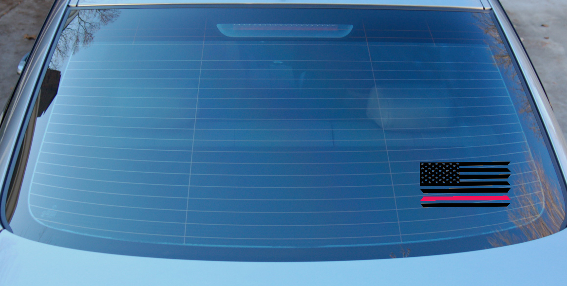 American flag decal sticker outdoor weather and UV resistant for up to 5 years. Thin color line in the flag.