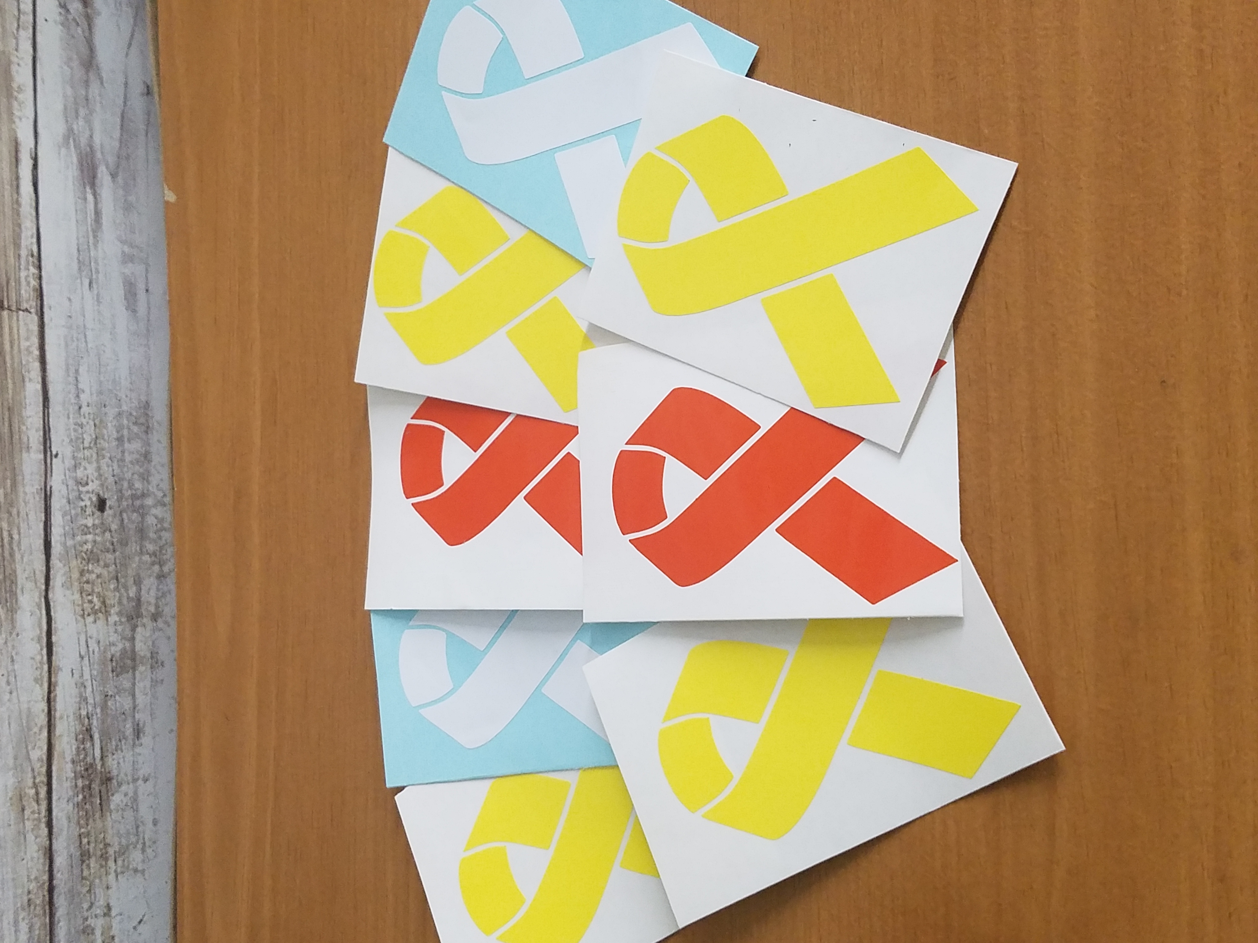 Limited time offer of Mini awareness support ribbons permanent outdoor vinyl decals.