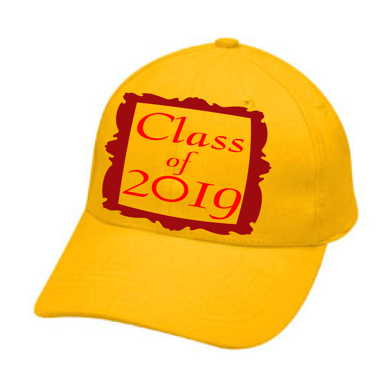Class of 2019 framed, yellow baseball cap for men, women and children.
