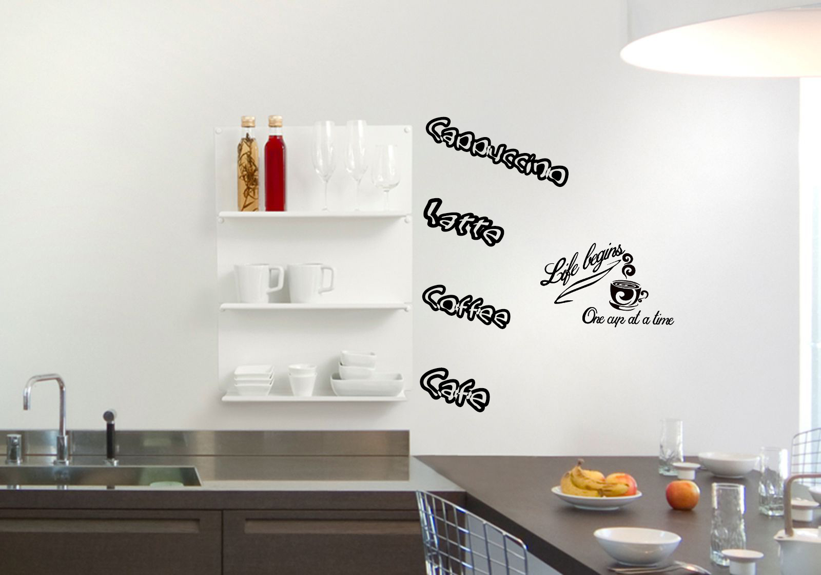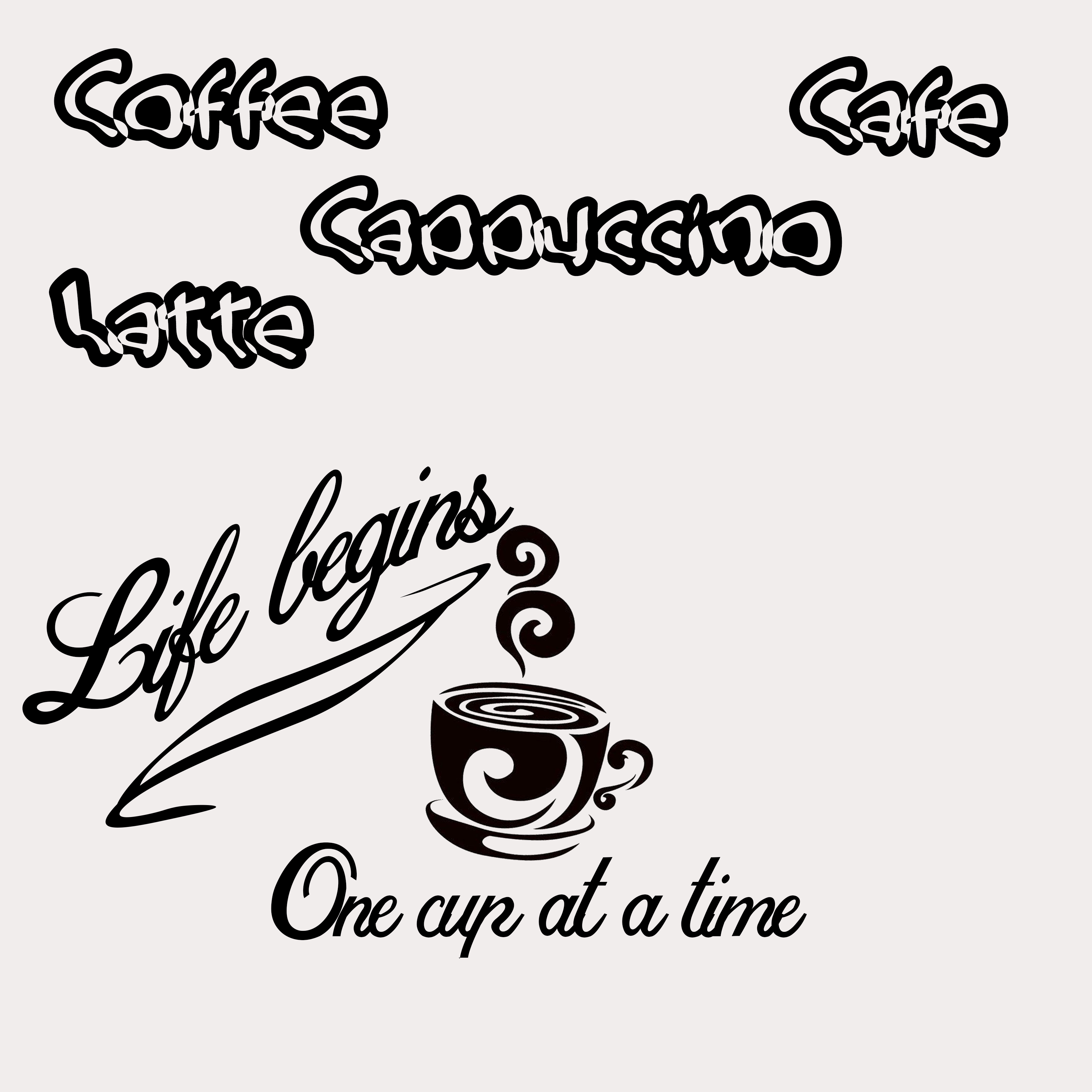 One cup cafe latte coffee wall decal sticker removable lettering set kitchen walls