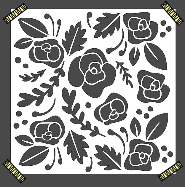 Adhesive back helps prevent stencil shifting or color bleed around the edges. You can also use tape to hole in place on the corners.