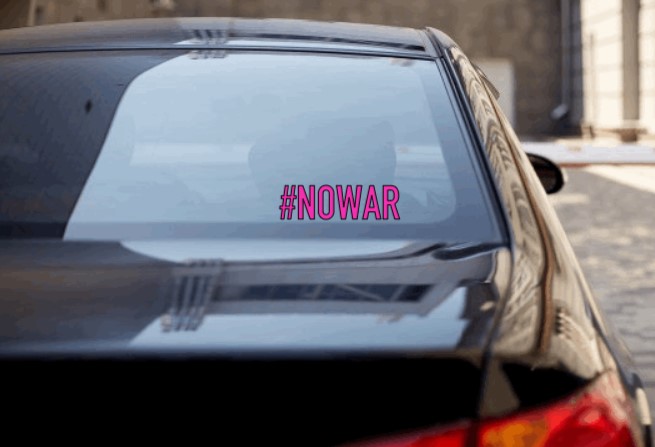 #nowar vinyl outdoor window decal weather resistant ready to apply