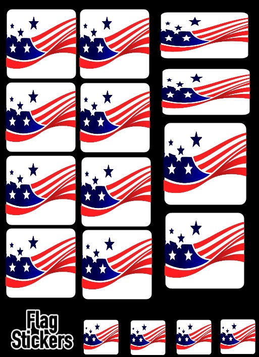 Red and blue Flag stickers variety size pack peel and stick weather resistant american flag