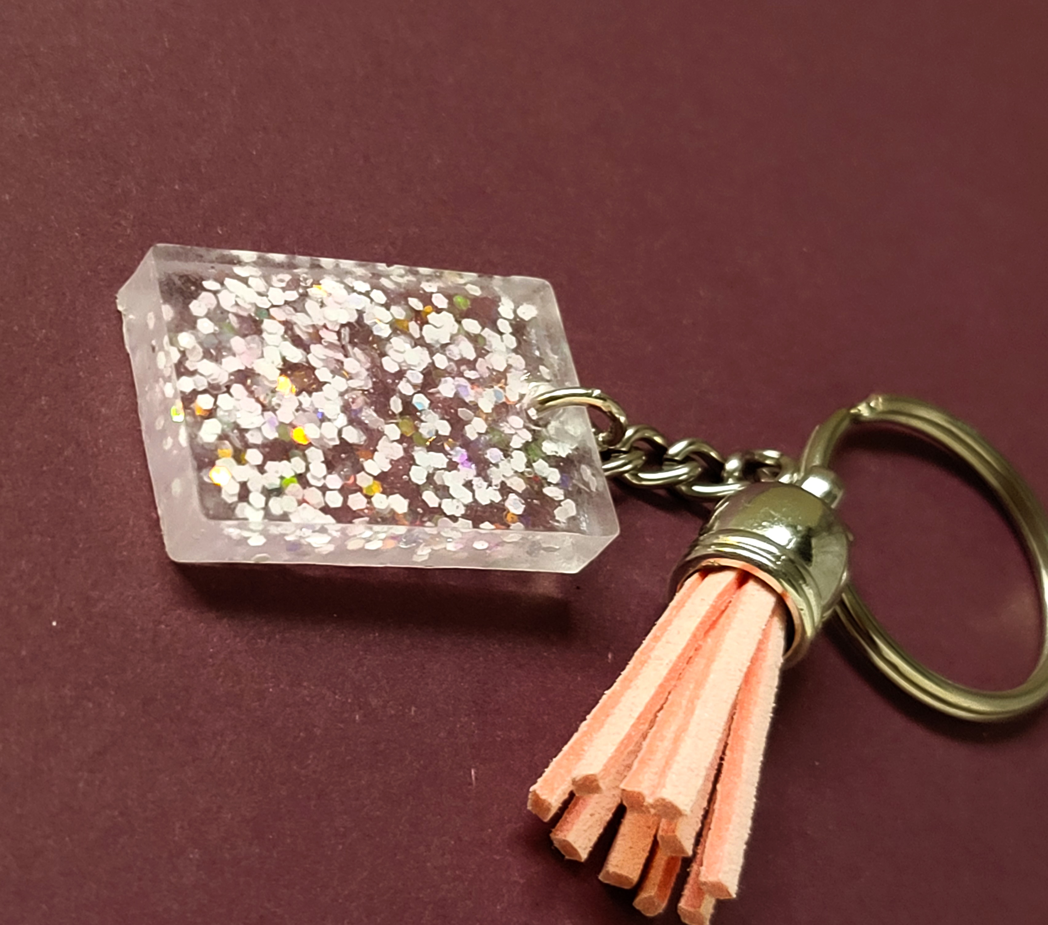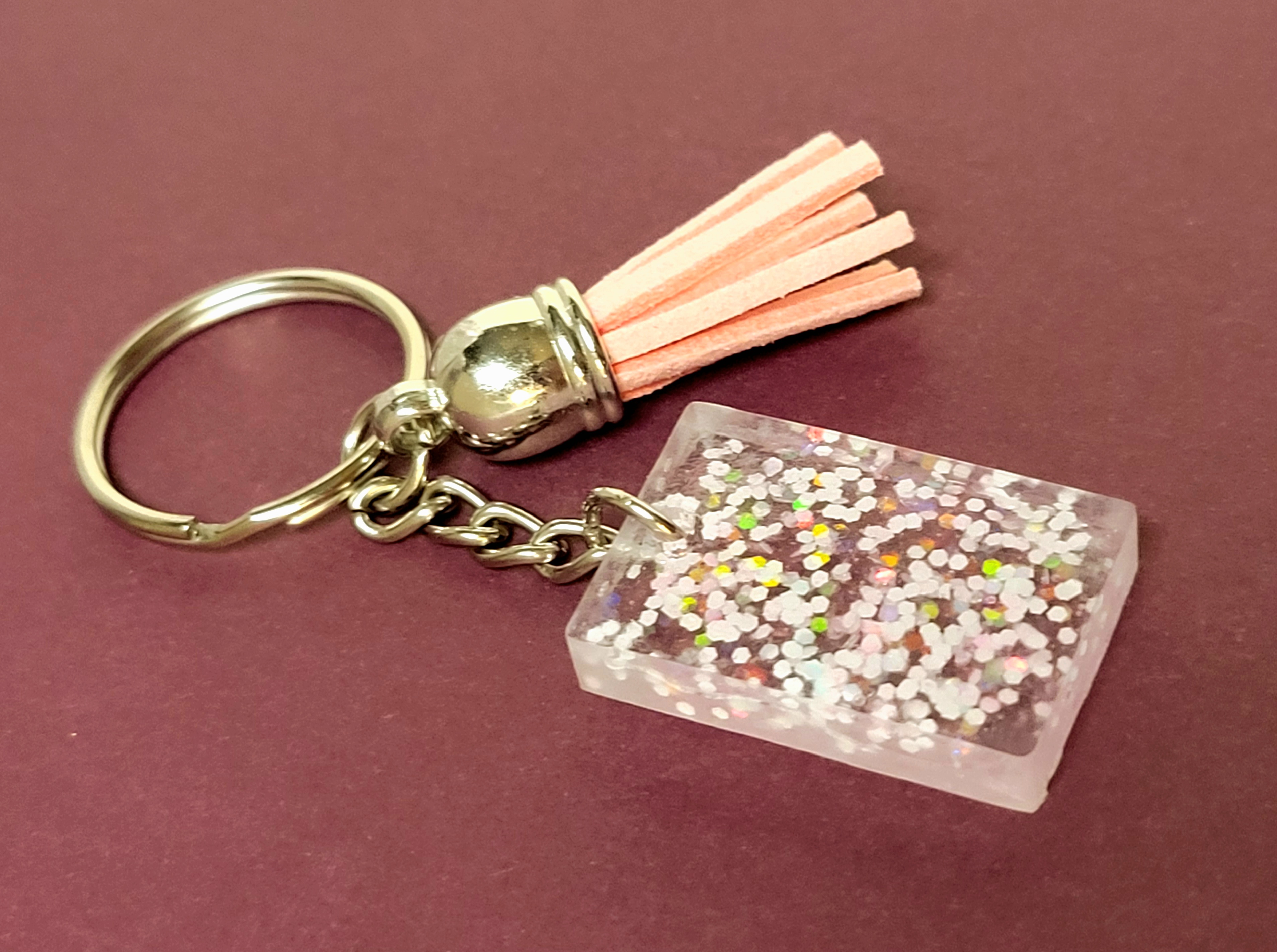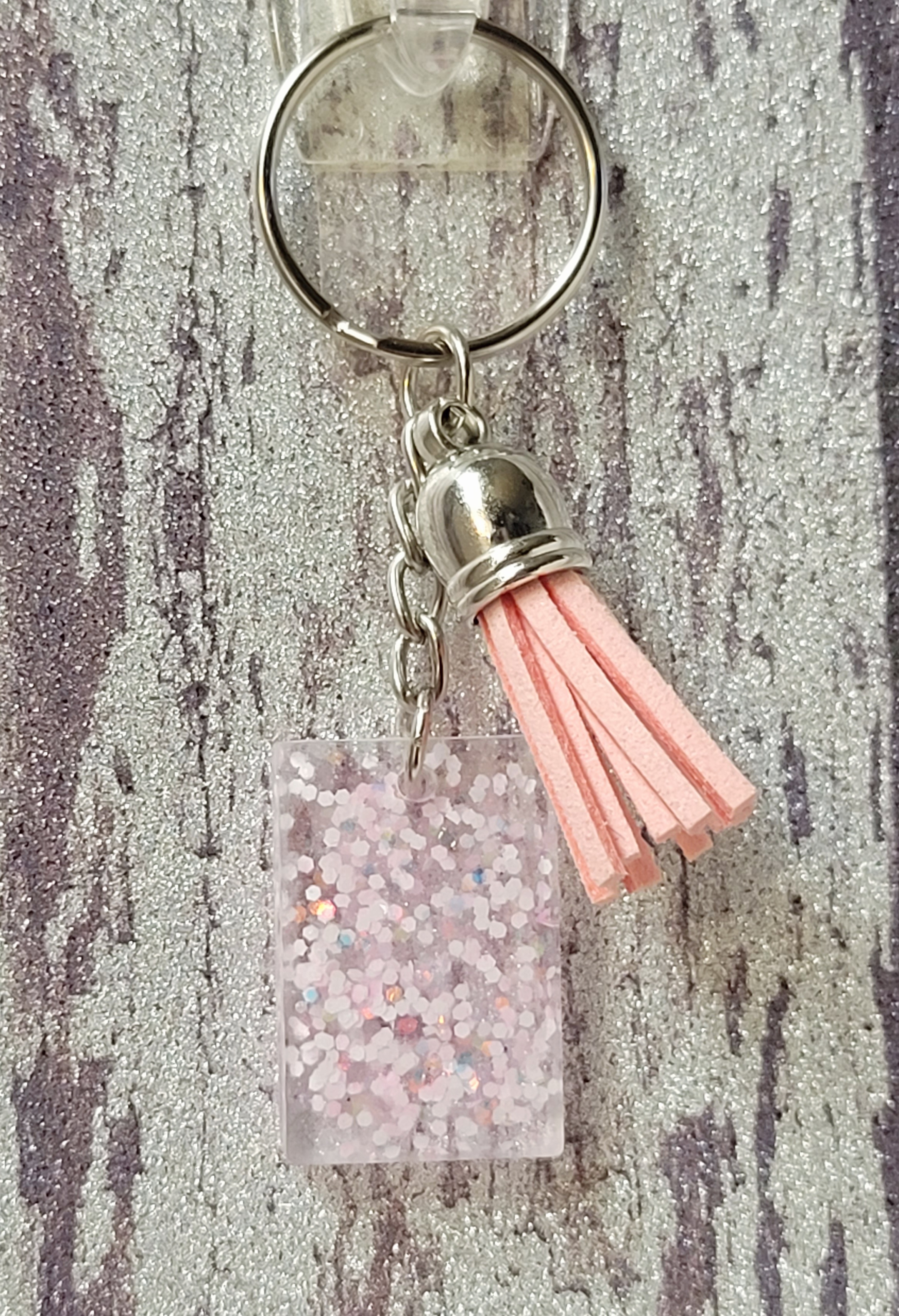 Pink white glitterful keychain clear resin
